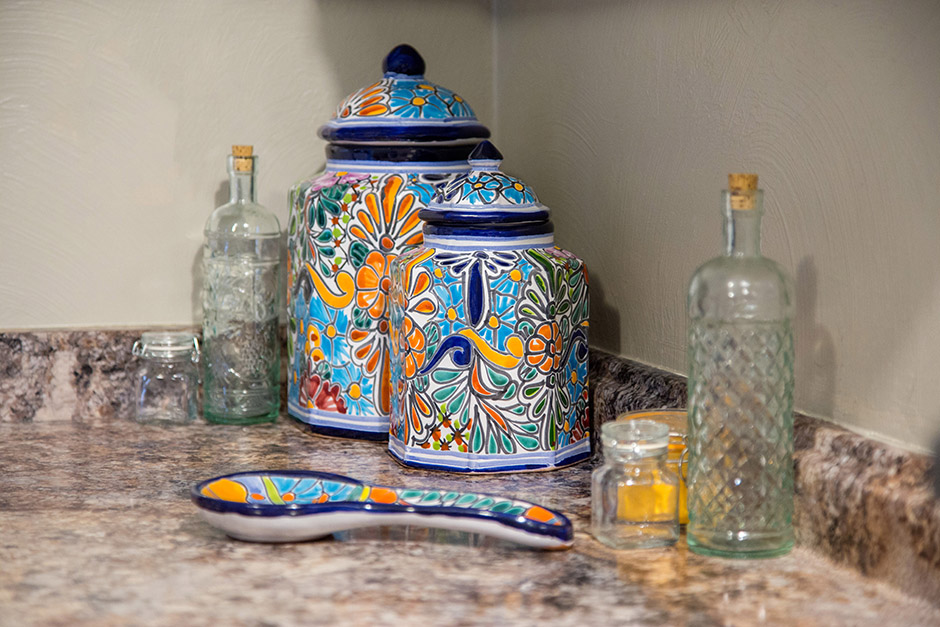 If you love to bake then take advantage of the cake plates by stacking them together. You can put some fruit on those plates or other kitchen ornaments to create a visual drama for the countertop.