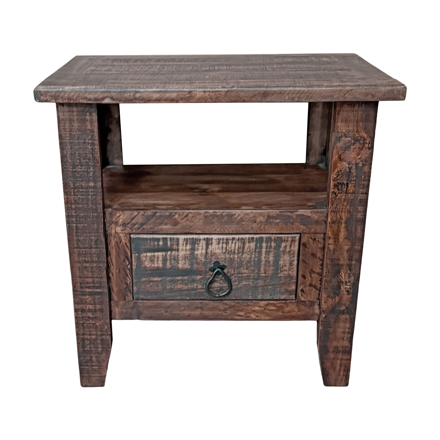 Our Sundance End Table features classic lines and rustic appeal. Made from solid pine, the sturdy table can be placed in virtually any room of your home, as its simple styling compliments many other furniture designs. The Sundance End Table has one small drawer accented with a matte black drawer pull, plus an upper shelf for extra storage. Skillfully handmade in Mexico.