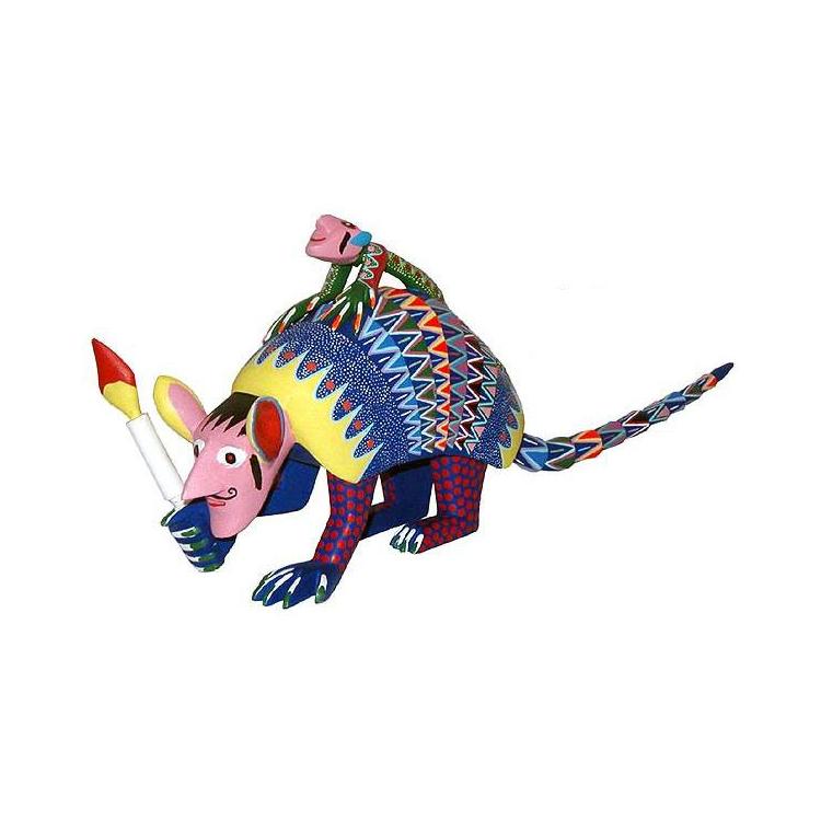 This imaginative "Nahuals with Candle" by Oaxacan artist Pablo Lopez was hand-carved from local Copal wood and delicately painted in stunning detail with a steady hand and brilliant acrylic colors. The end result is a one-of-a-kind work of art, whose quality and creativity are internationally recognized.