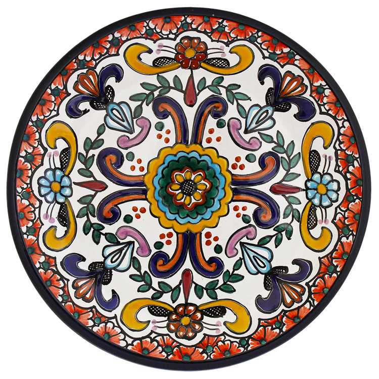 This beautifully handcrafted Talavera plate by the renowned Tomas Huerta ceramic studio will make a vibrant and cultural addition to any space in your home. With over 100 unique designs in this expansive collection, you're sure to find one that fits your taste. Each authentic Talavera plate is handmade in Puebla, Mexico, and is 100% lead free; chip and crack resistant; as well as microwave, oven, and dishwasher safe! There is even an eyelet on the back of every plate for easy wall hanging, making a Talavera plate an excellent gift idea, too. Please Choose an Item