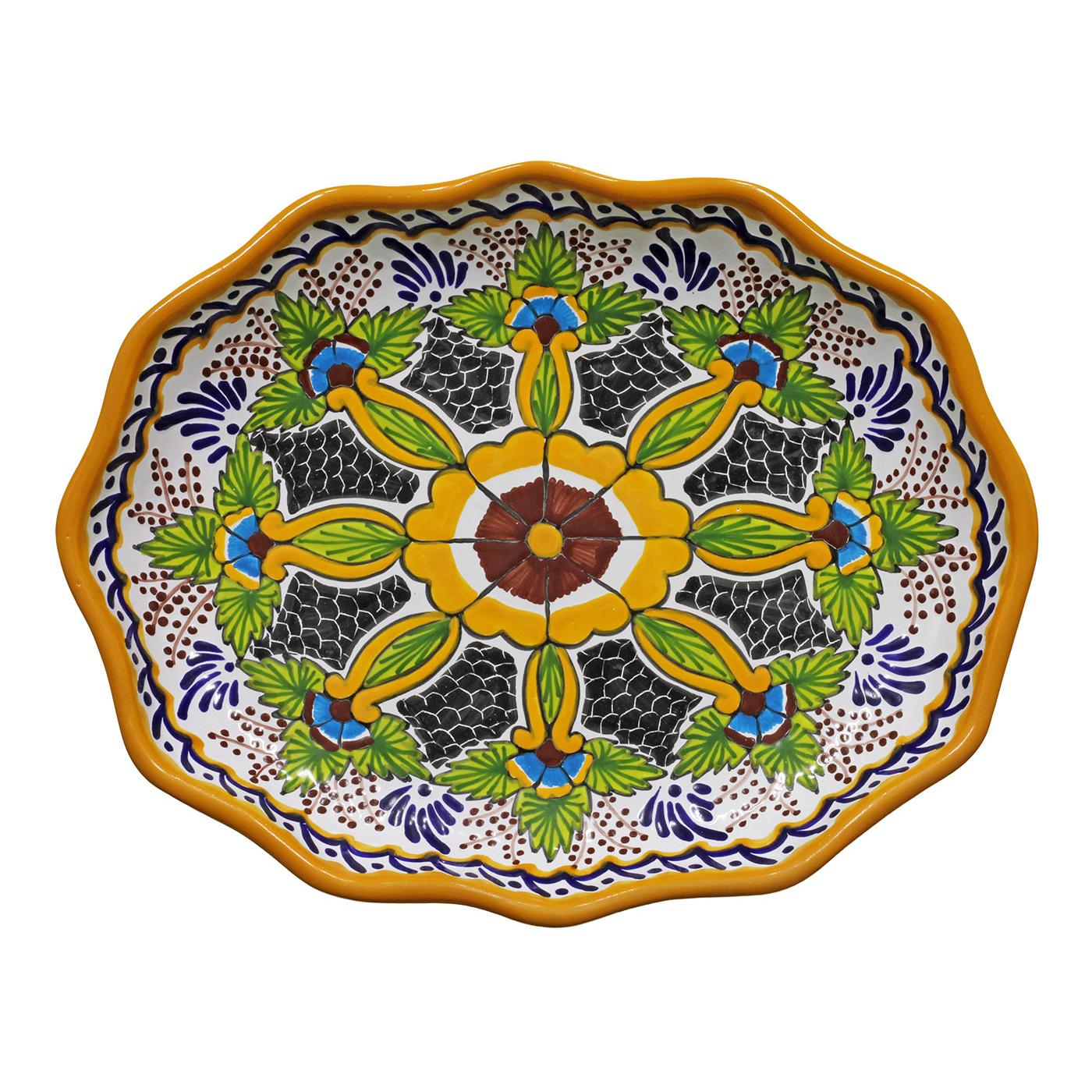 This beautiful, handmade Talavera platter makes a perfect highlight to any dining table, serving area, or wall of your home. This platter is ideal for serving all types of food or drink in southwestern style. As decoration, the platter will make a colorful addition to any room's decor. Beautifully handcrafted by the Tomas Huerta Talavera studio in Puebla, Mexico, every authentic piece is 100% lead free, chip and crack resistant, as well as microwave, oven, and dishwasher safe! Please Choose an Item