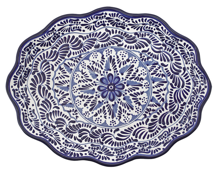 This beautiful, handmade Talavera platter makes a perfect highlight to any dining table, serving area, or wall of your home. This platter is ideal for serving all types of food or drink in southwestern style. As decoration, the platter will make a colorful addition to any room's decor. Beautifully handcrafted by the Tomas Huerta Talavera studio in Puebla, Mexico, every authentic piece is 100% lead free, chip and crack resistant, as well as microwave, oven, and dishwasher safe! Please Choose an Item