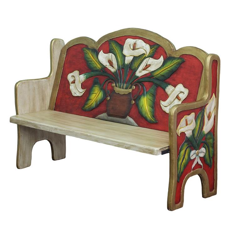The perfect combination of beauty and utility, this stunning maroon lily bench will add color and charm to any seating area. Hand carved and hand painted by highly skilled artisans in central Mexico, these benches are heirloom-quality, to be passed down from one generation to the next. So summon the interior designer from within, and create a fabulous new space in your home with this striking lily bench as the centerpiece.