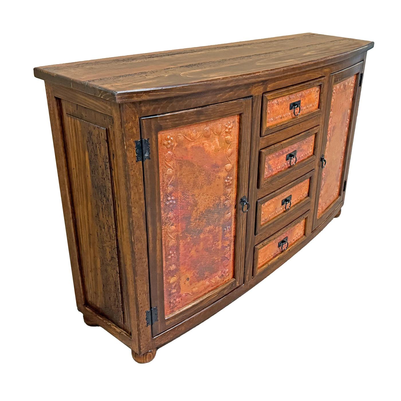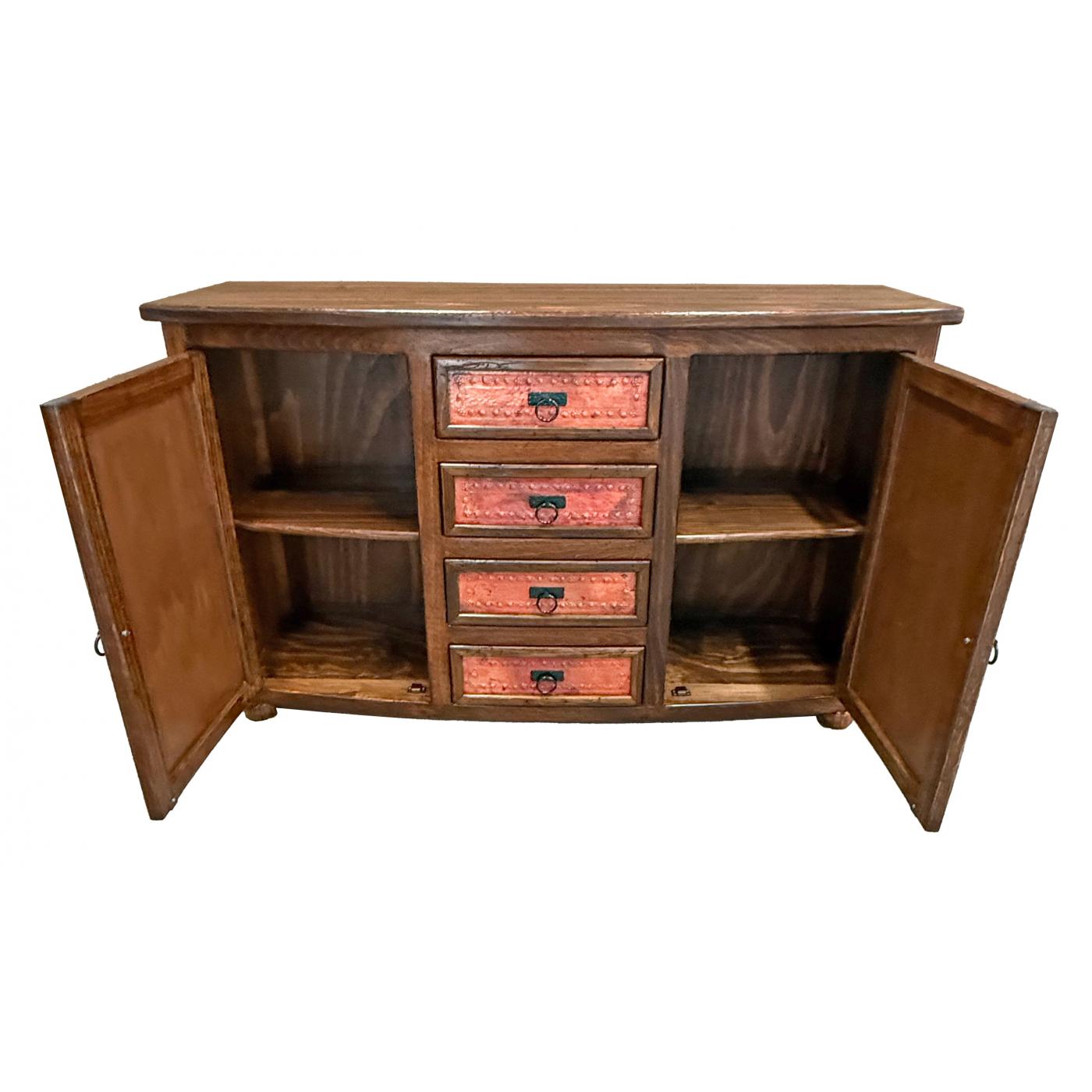 The Curved Console features a unique rounded design with gorgeous copper door and drawer fronts. This console table will highlight any room of your home and provides excellent storage space, too. Use this console table for extra storage in your living room, dining room, bedroom or hallway.