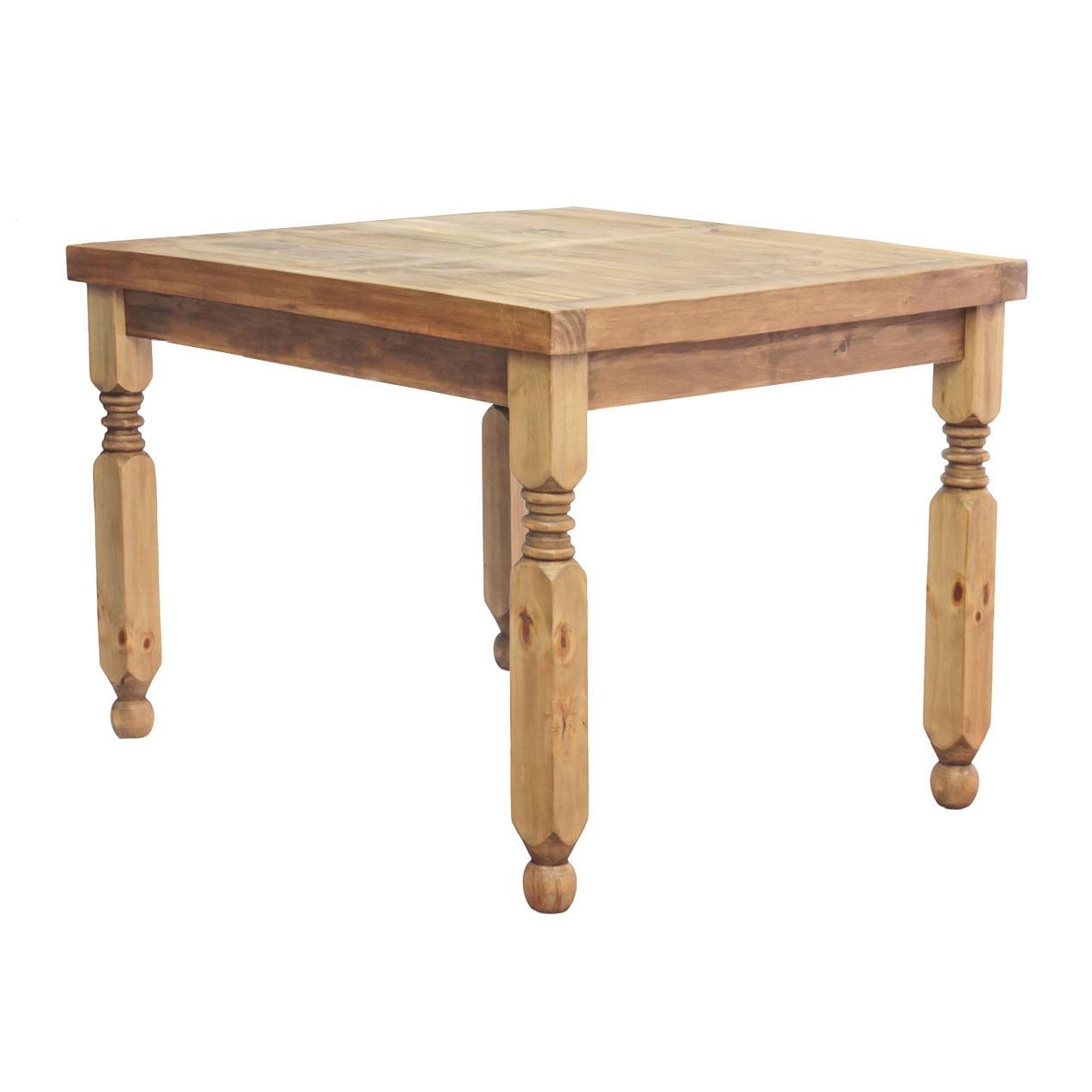With a rustic, distressed finish and carved details on the legs, the solid pine construction of our Square Lyon dining table will provide your family with years of loyal service.