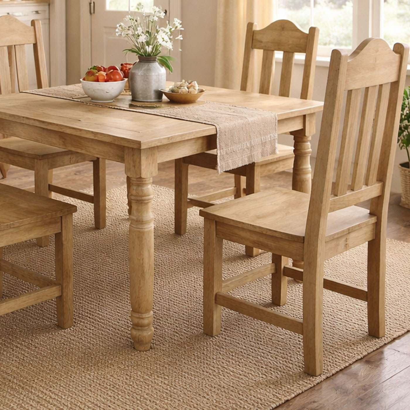 Skillfully made in Mexico, our Square Lyon Dining Set will comfortably seat 4 adults.