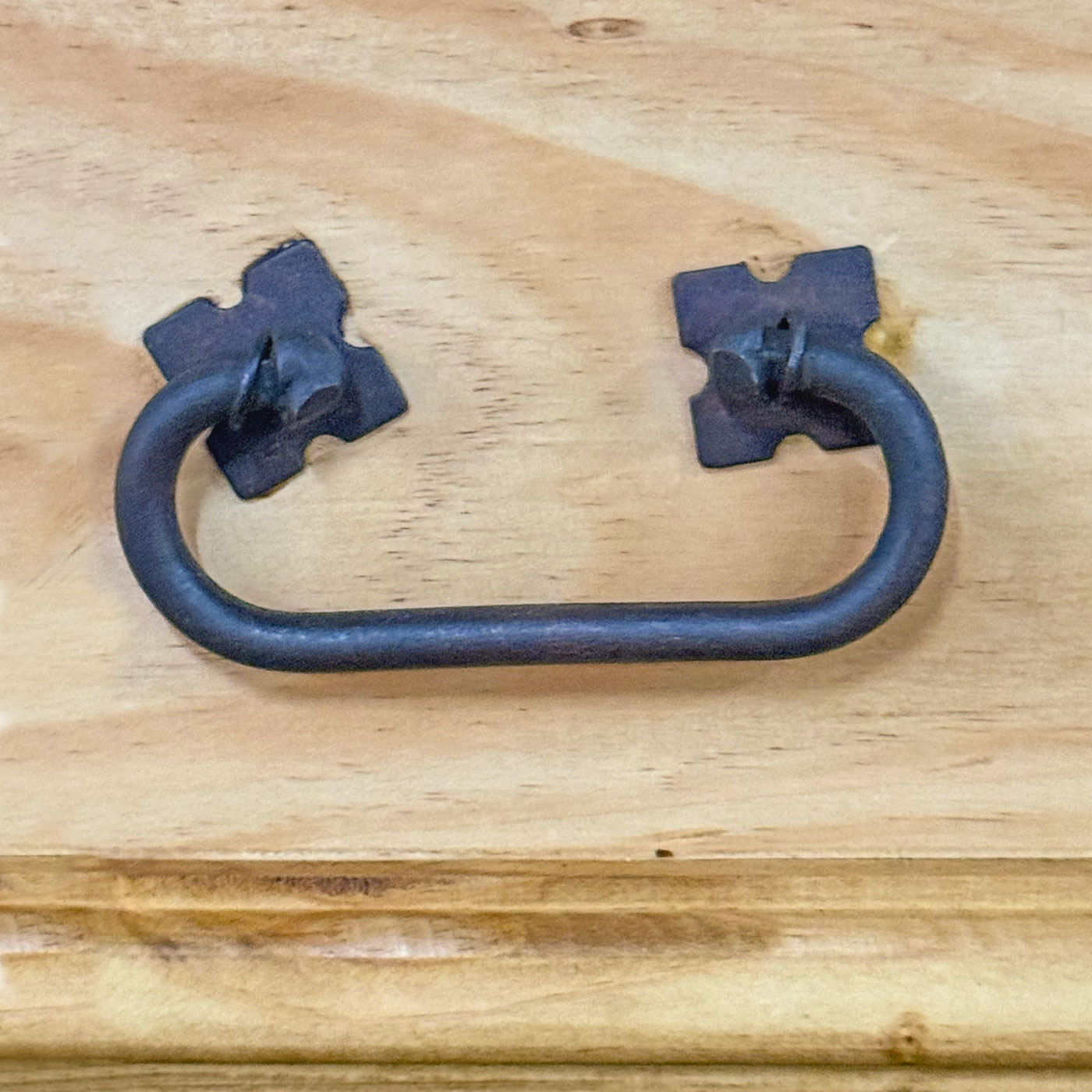 Hand-forged, wrought iron hardware.