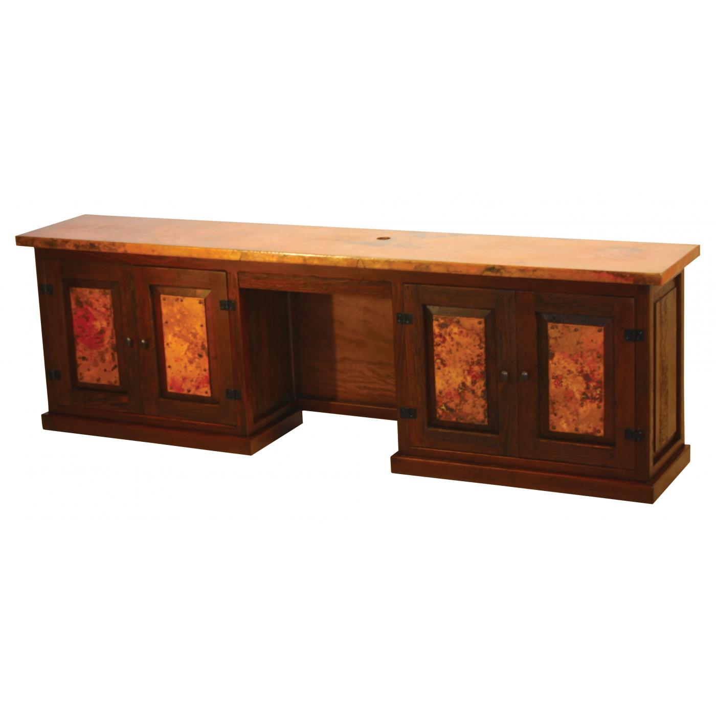 This Back Desk is a companion to the Executive Desk (DSK-13CU) and features an enormous copper surface area that is hand-hammered fine enough to easily be written on problem free. The beautiful base features four spacious cabinets for holding all of your business supplies.
