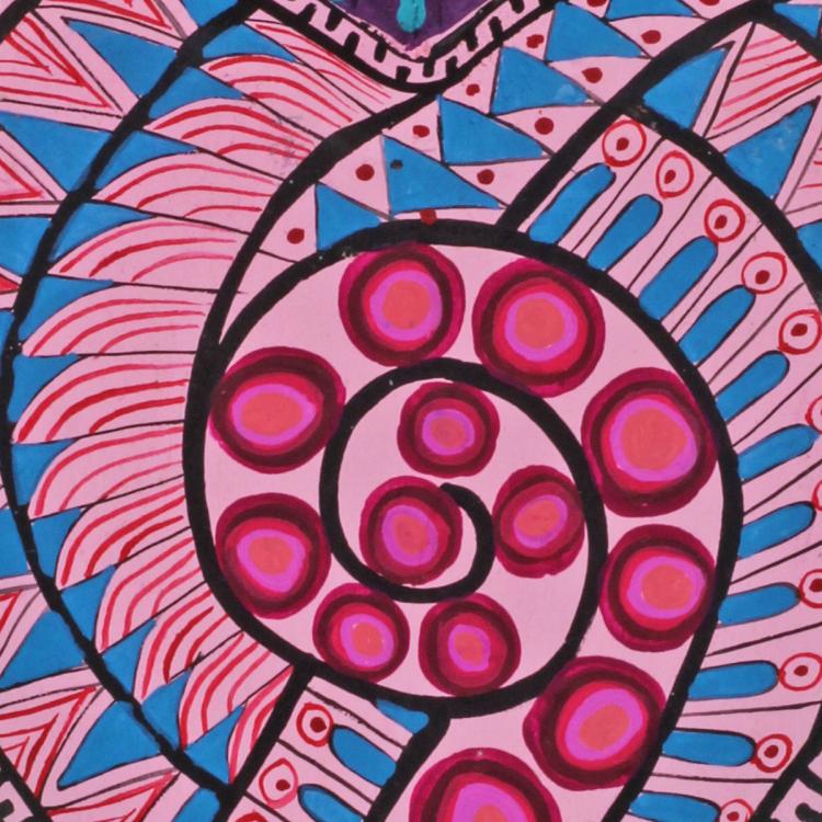 Acrylic paint on a wooden form.