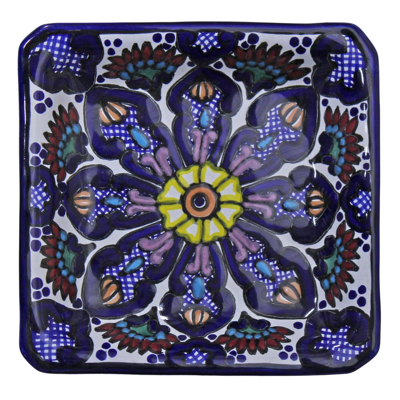 Use this colorful Talavera Square Snack Tray to highlight your kitchen or dining area with the authentic feel of Mexico. Every Talavera Square Snack Tray is hand formed and hand-painted in Puebla, Mexico. Perfect for serving your favorite chips and Hors d'oeuvre, this bowl is also 100% lead free, chip and crack resistant, as well as microwave, oven, and dishwasher safe!