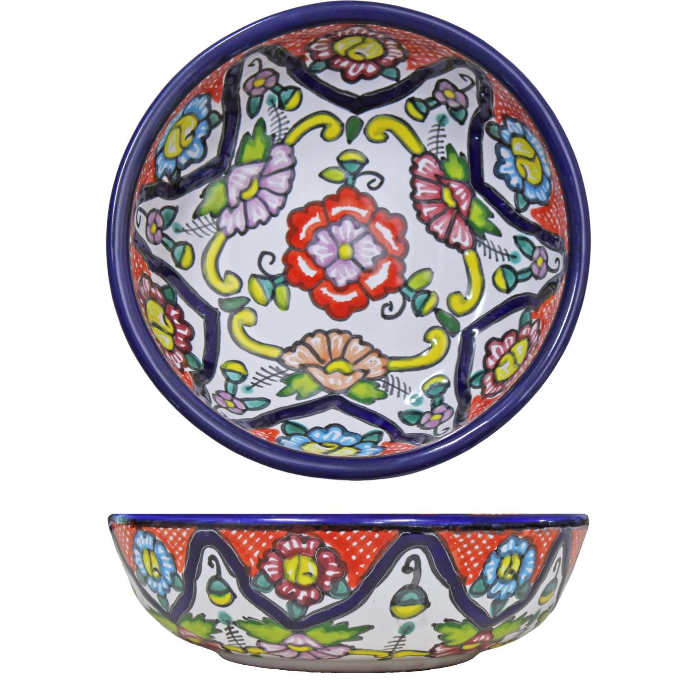 These colorful, handmade Talavera bowls make a perfect highlight to any dining room. Hand painted on the inside and out, they're ideal for serving food or drink in authentic Mexican style! Perfectly suited to serve snacks and dips to hungry guests, these beautifully handcrafted Talavera bowls are made by Tomas Huerta in Puebla, Mexico. Every Talavera bowl is 100% lead free; chip resistant; and microwave, oven, and dishwasher safe!