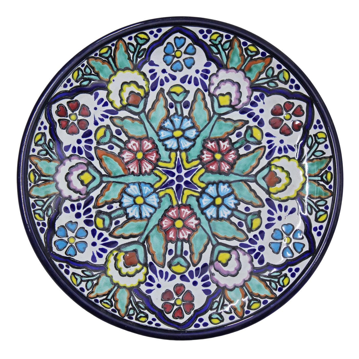 These colorful, handmade Talavera bowls will make an excellent highlight to any dining room! Intricately hand-painted on the inside, their shallow form makes them ideal for serving beans, rice, pasta and other foods to family and friends. Also perfectly suited to serve snacks and dips to hungry guests, these wide Talavera bowls will decorate your kitchen in authentic southwestern style! Made by the Tomas Huerta ceramic studio in Puebla, Mexico, every Talavera bowl is 100% lead free and dishwasher safe!