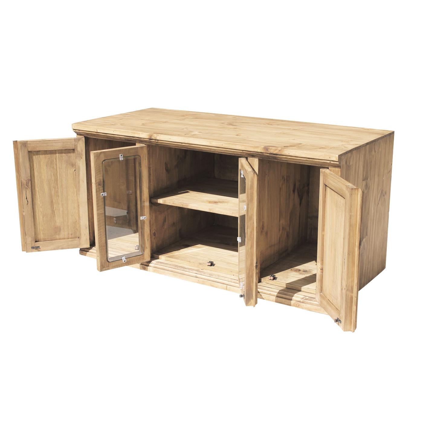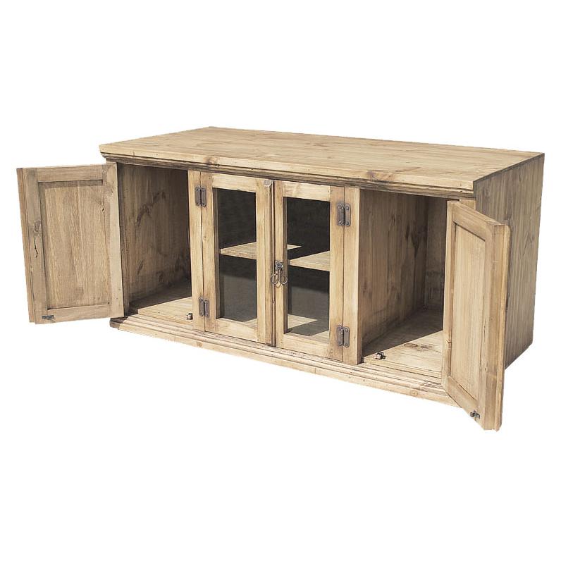 Place your TV on top of this rustic Maria TV Stand and enjoy the show! The center cabinet has a shelf that divides the interior space in half, ideal for most multimedia devices such as a DVD player, game consoles, CD players, audio receivers and much more! Handmade in Mexico by skilled craftsmen, you'll appreciate the solid pine construction and attractive glass-paneled doors that will keep your expensive equipment dust free and safe.