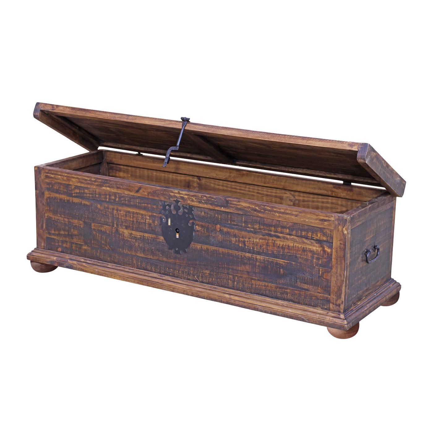Made by hand in Mexico, our Queen Ranch Trunk w/ Feet is versatile, durable, and perfect for a busy household. Placed at the foot of a bed, it can store bedding and quilts. In a family room, it can be used for storage and double as an accent table or bench. A utilitarian, Southwest-styled piece that fits well with most casual decor, it is ideal as a table top to display indoor plants. Handmade from solid pine in Mexico, the Queen Ranch Trunk w/ Feet is accented by durable hand-forged iron hardware and completed with a distressed rustic finish.