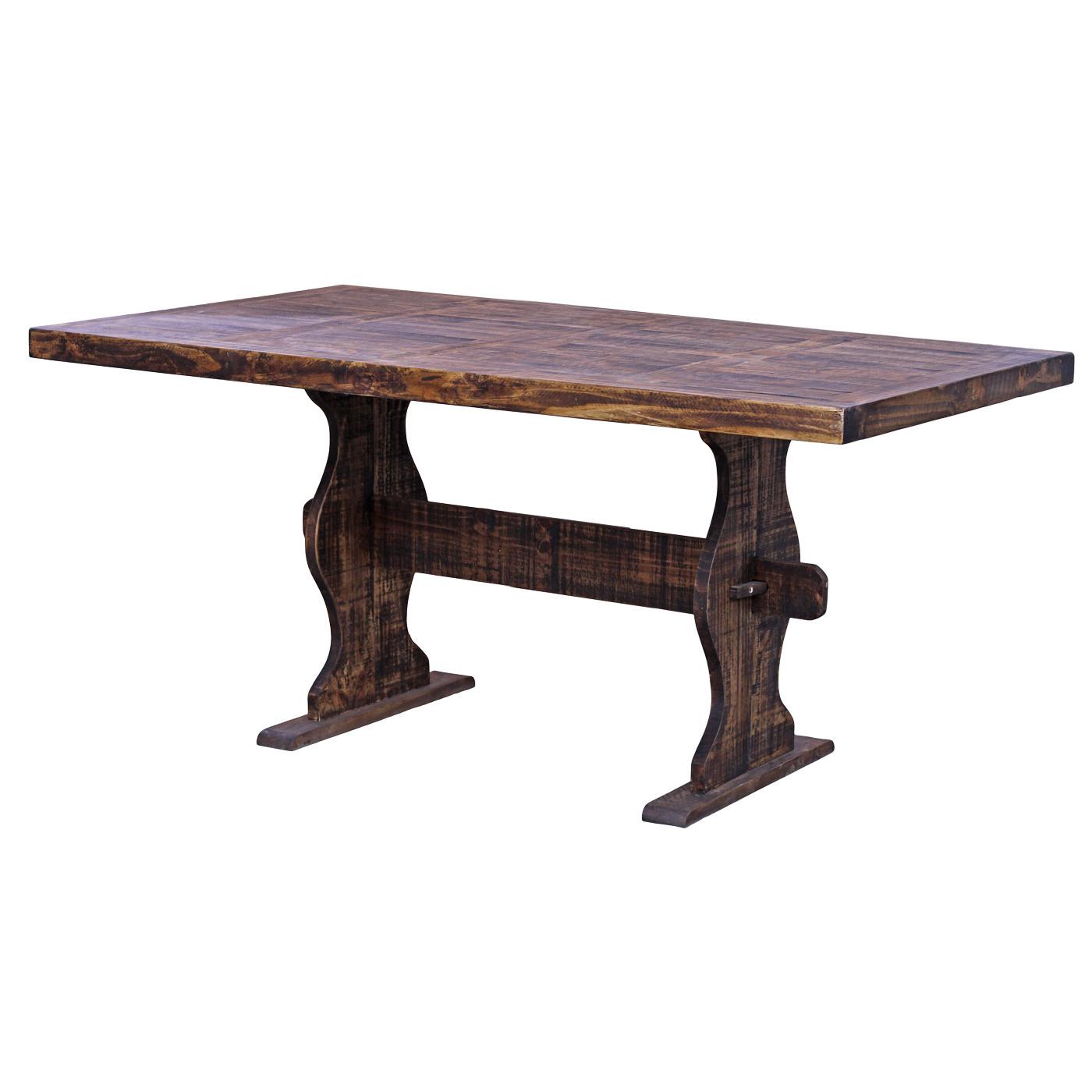 Our affordable and attractive Cody Dining Table is handmade of sturdy pine and will provide exceptional stability for even the most rambunctious family dinners. The distressed finish is forgiving of spills as well. Available in two sizes, up to six adults can dine comfortably around the Small Cody Dining Table, while the large-size easily seats eight people! Pair this trestle table with our Remington Bench for a beautifully rustic dining experience. The large table space lends well to hobbies and crafts as well.