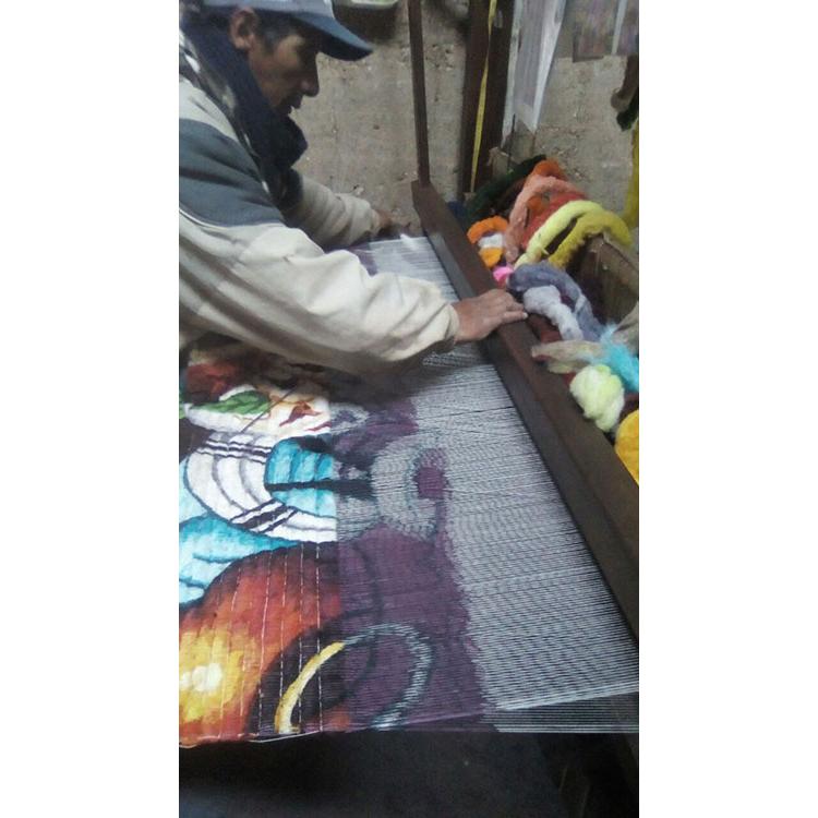 Peruvian tapestries are world-renowned for the looming and stitching skills required to create detailed scenes of Andean culture in every weaving. The stunning depictions incorporate vibrant colors made from natural dyes consisting of local minerals and plants, and can be detailed enough to have field of depth in their scenes. All the tapestries available from La Fuente Imports are handmade in the high-altitude village of San Pedro de Cajas, not far from Lake Chinchaycocha. They were chosen for their overall quality, complexity of design, and expression of warmth and cultural spirit. These handmade pieces of art are best displayed on a wall, and will compliment any southwestern or rustic decor beautifully.