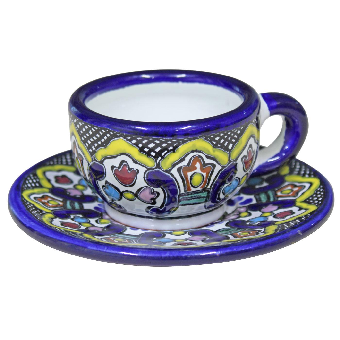 Authentic Talavera Tea Cup with matching saucer. Handcrafted by the Tomas Huerta ceramic studio in Puebla, Mexico.